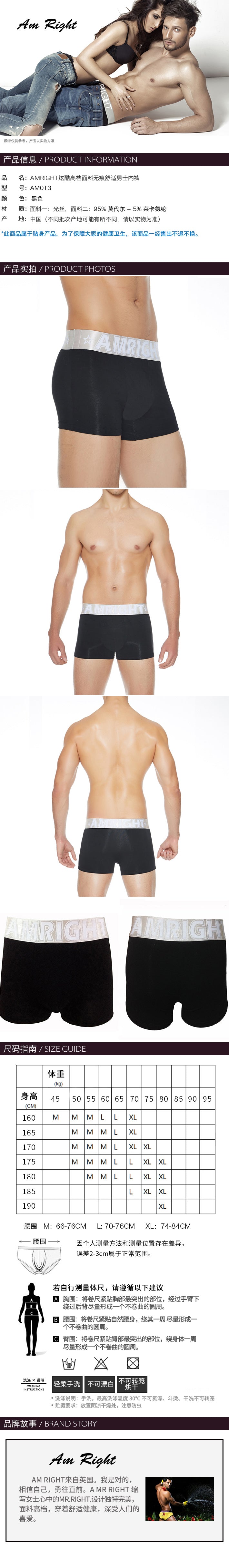 Brand Am Right Men's Underwear Shorties Underwear 5cm wide belt, back traceless. Boyshorts Panties / Boxers Underwear / Briefs Underwear Black